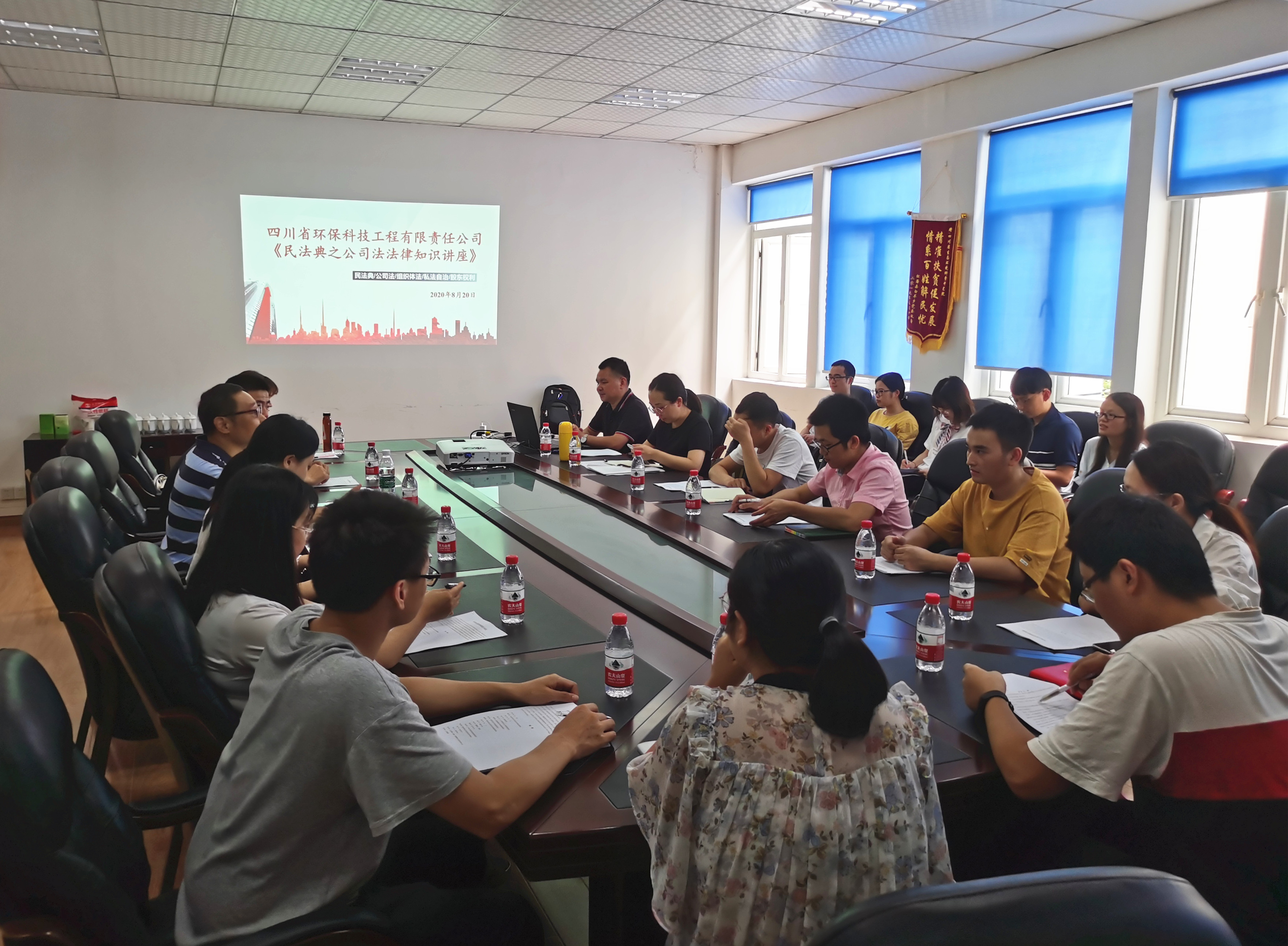 為了進一步規范公司組織和行為,保護公司、股東、職工合法權益,完善公司內部治理結構,加強企業經營過程中的法制意識和法律風險防控工作,8月20日,公司在省環科院3樓會議室組織開展《民法典之公司法》法律知識專題培訓講座,公司領導及各部門代表共計20余人參與。此次講座邀請到公司法律顧問、四川永茂律師事務所主任律師周永孟擔任活動講師。